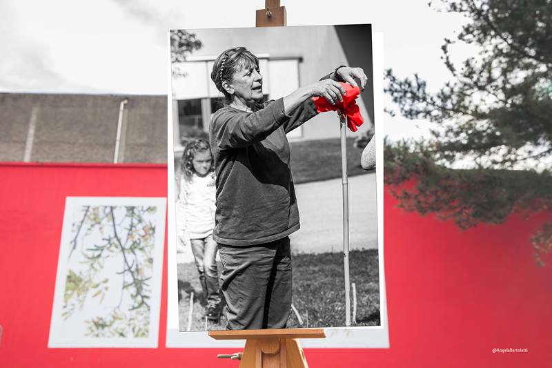 Immagine precedente Immagine successiva Emanuela Bussolati Faccia da libro Emanuela Bussolati Muro Rosso di Piazza dell’Immaginario Macrolotto Zero, Prato
